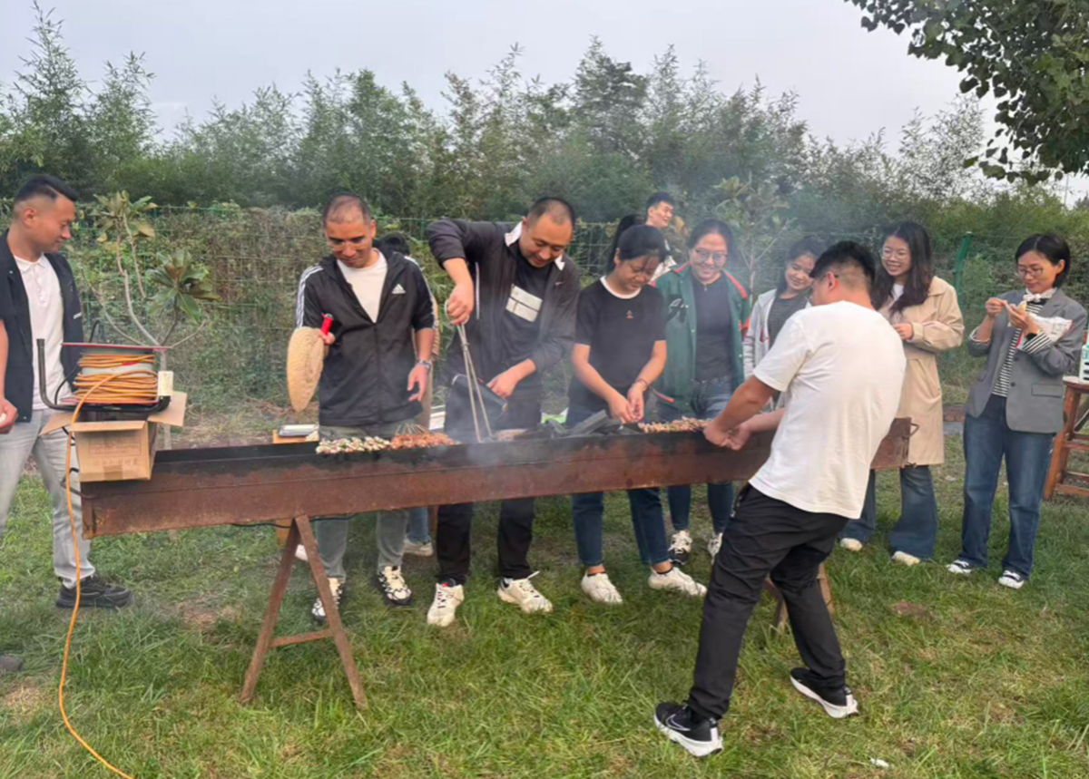 烧烤架上肉串滋滋作响,香气四溢。大家围坐一起,一边品尝亲手制作的美食,一边畅谈工作与生活。绿树掩映,微风轻拂,优美的自然环境与轻松的氛围交织,让每位同事都在忙碌之余放松了身心。